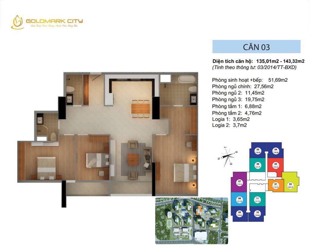Thiết kế mặt bằng tòa Ruby 1 chung cư Goldmark City