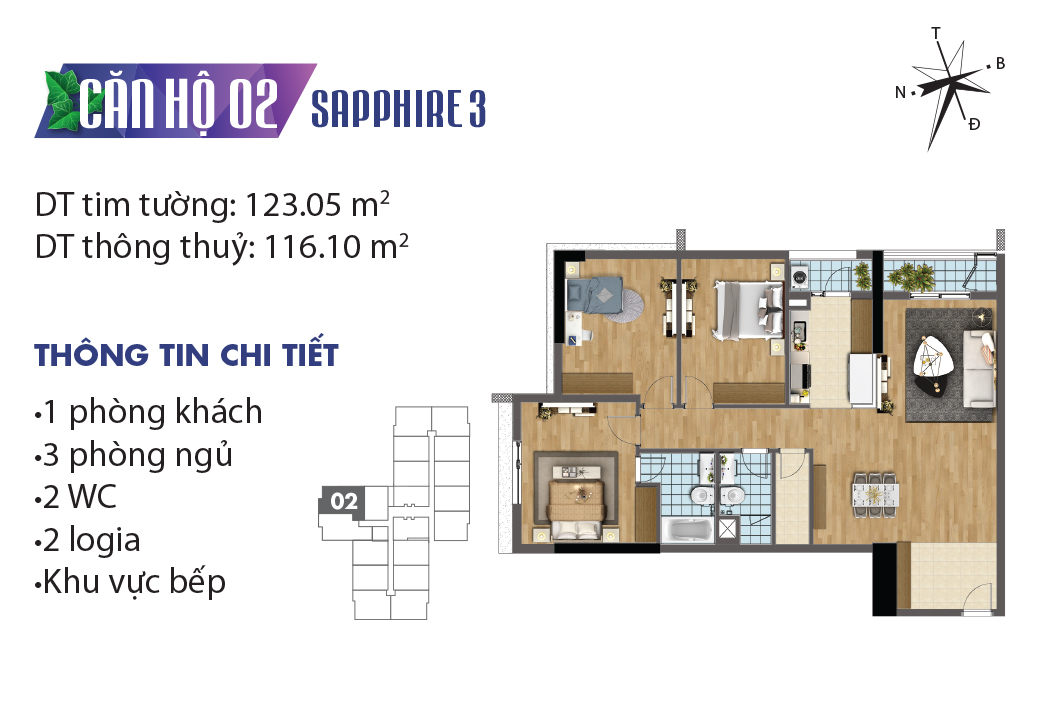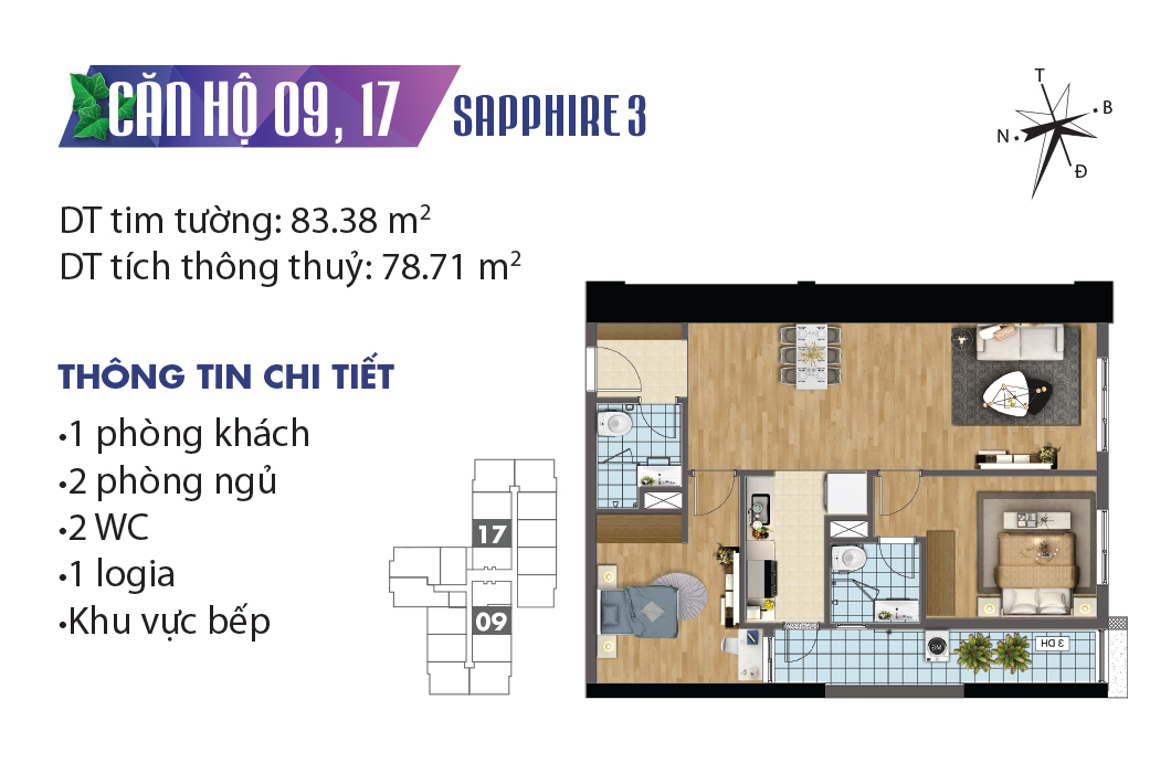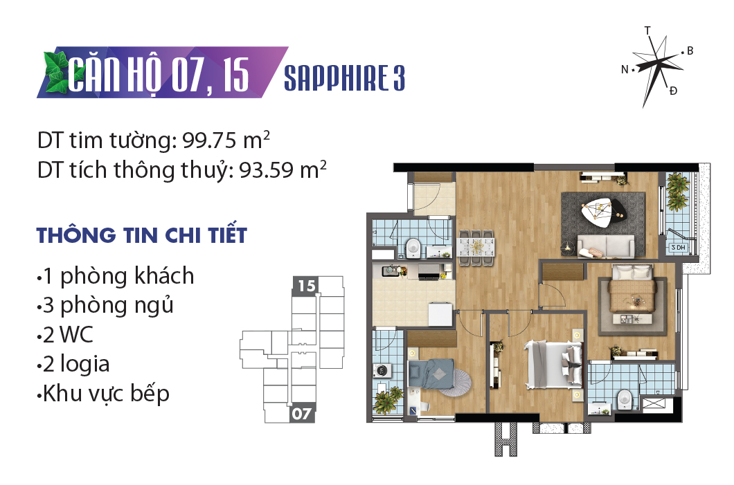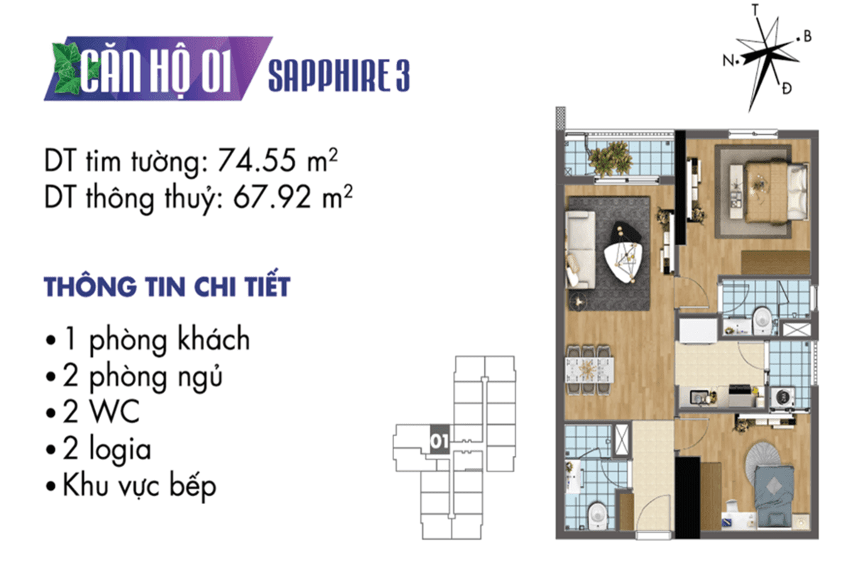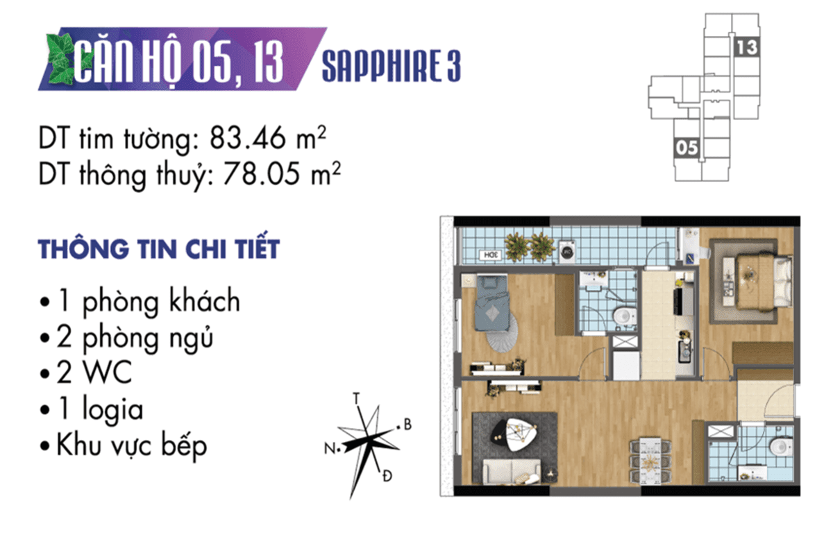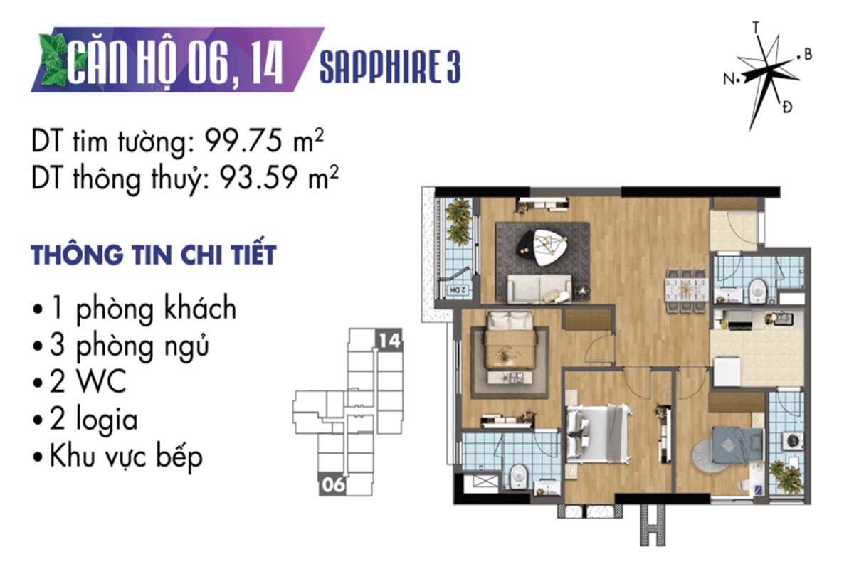 Thiết kế mặt bằng căn hộ tòa Sapphire 3 – TNR Goldmark City