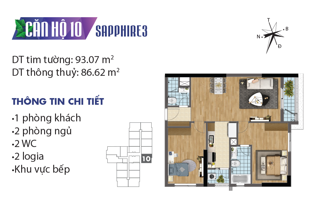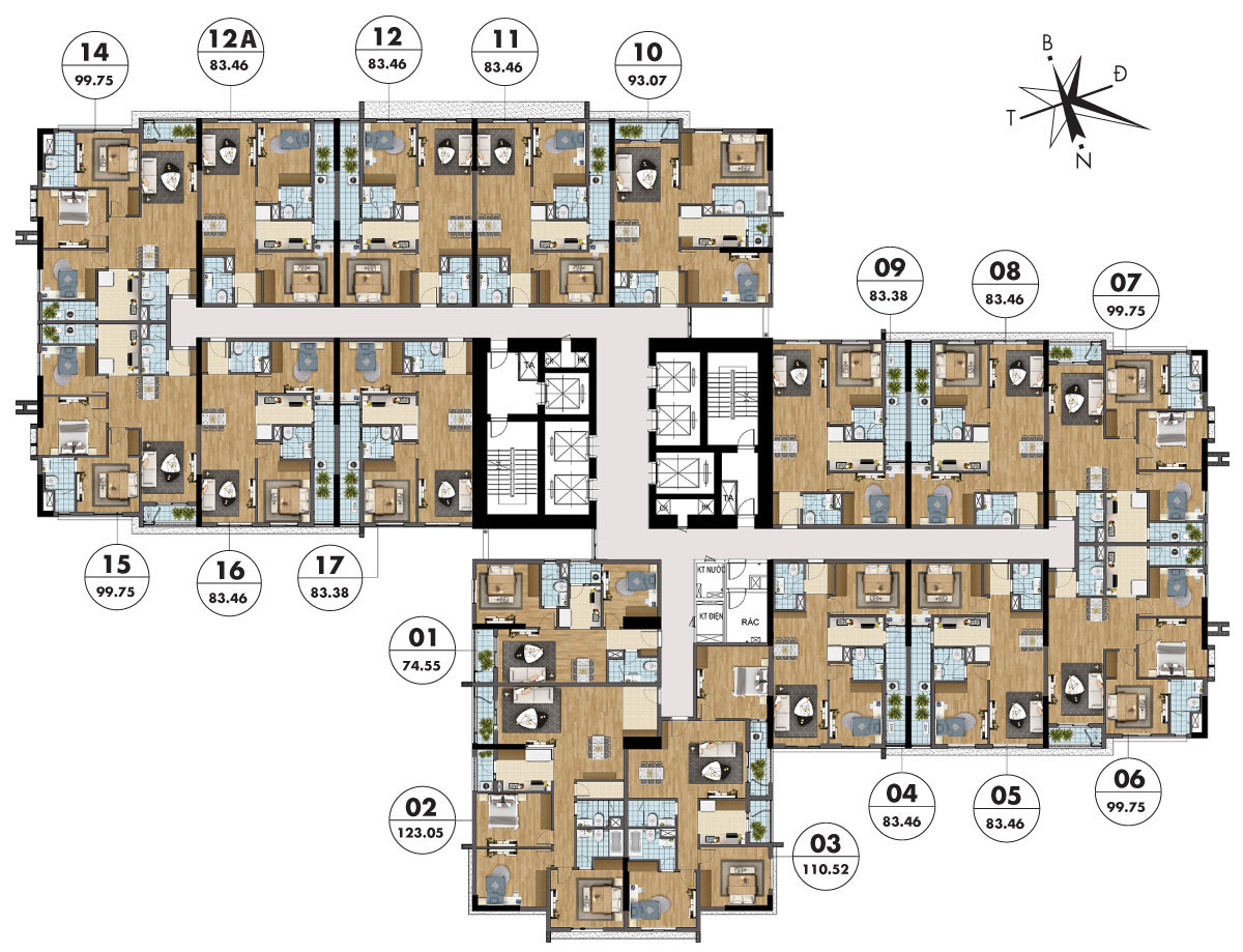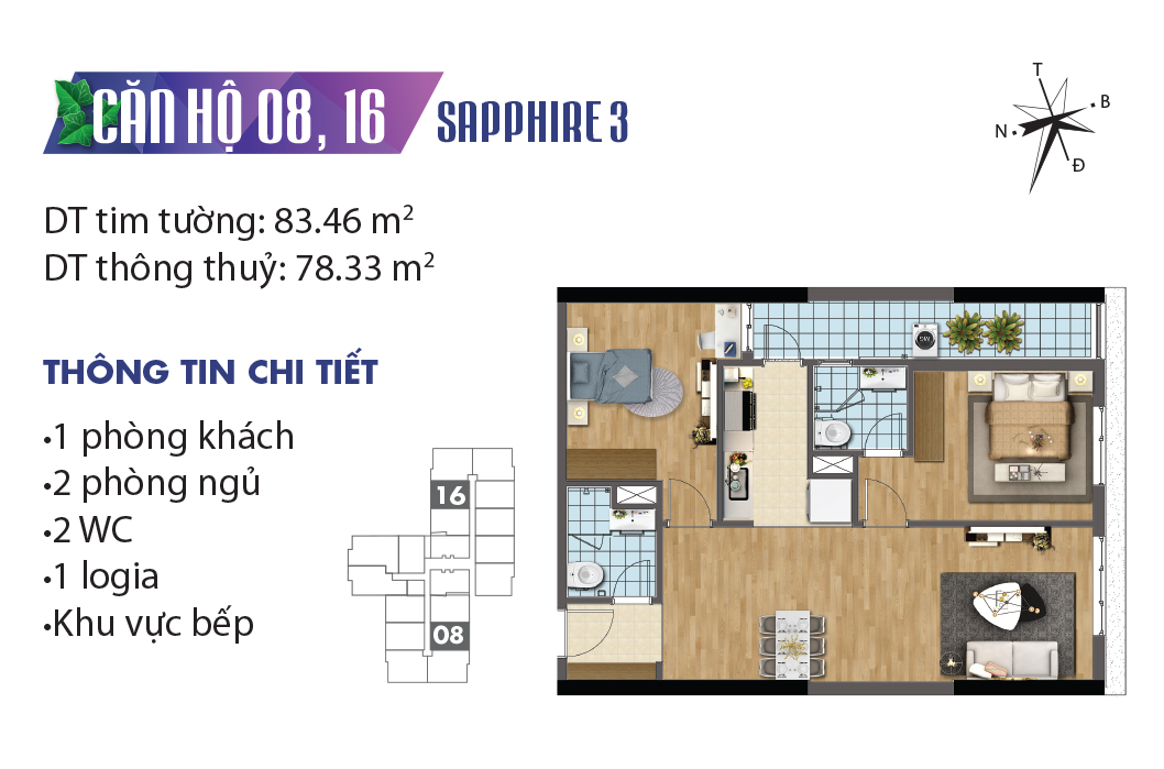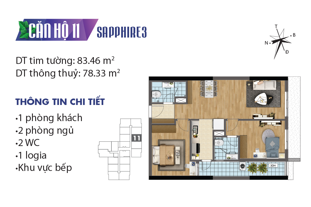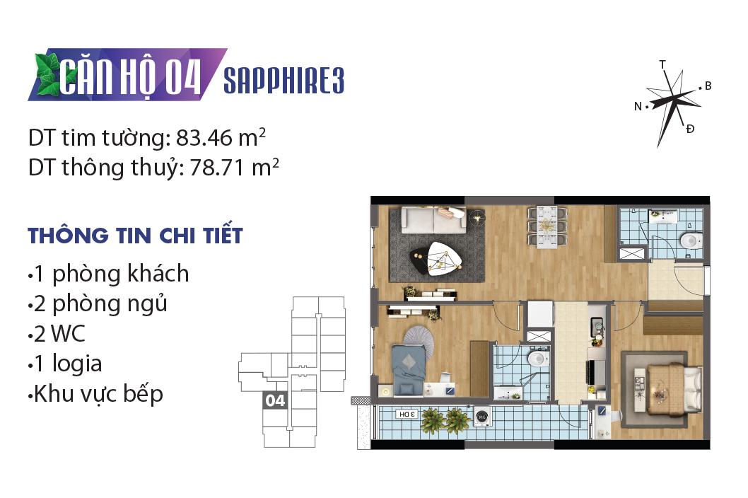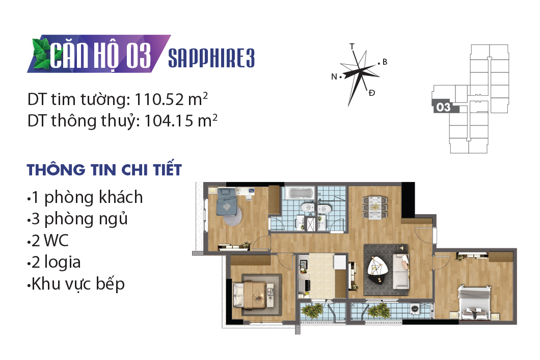 Thiết kế mặt bằng căn hộ tòa Sapphire 3 – TNR Goldmark City
